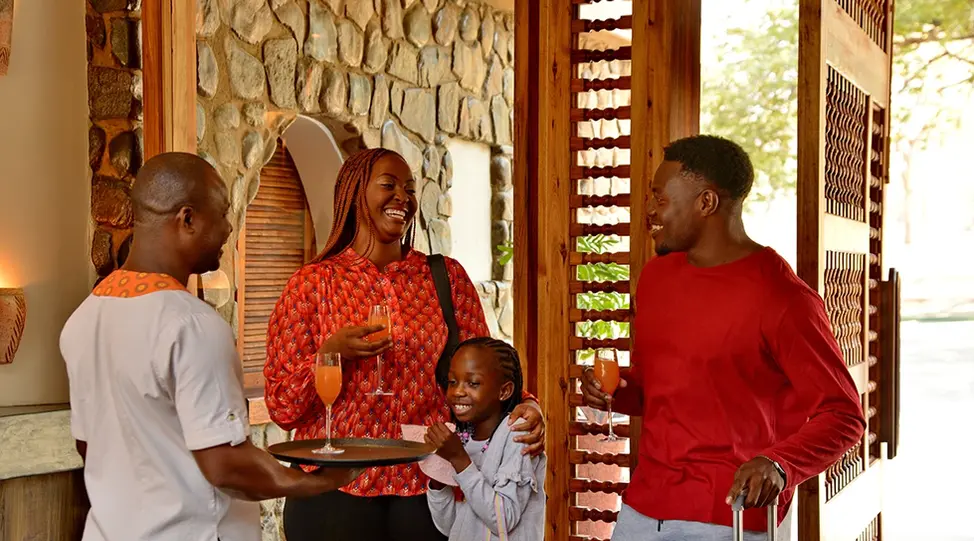 Hwange Safari Lodge features a wide range of room categories designed for adventurers, families, business travellers, and international visitors. Rooms offer modern comforts, air conditioning, en-suite bathrooms, and serene views over the waterhole or surrounding bush. On-site amenities include a swimming pool, restaurant, bar, conference facilities, and Wi-Fi — blending modern hospitality with classic safari charm.
